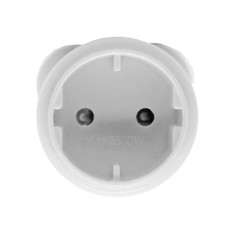 Schuko is a 3-pin plug to 2-pin Schuko round top loading socket. Use this adapter to convert your 2 Pin Schuko plug into a 3 pin plug.