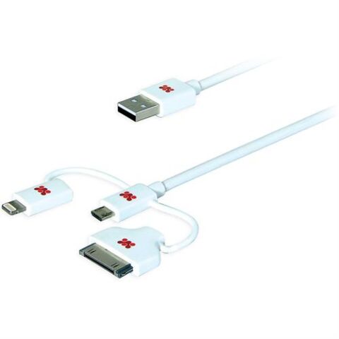 The Promate linkMate.trio Integrated 3 in 1 Smart USB Cable for Charge and Sync, Lightning, 30 Pin and Micro-USB is a complete multifunctional USB kit for many of your lifestyle gadgets. It comprises four different Charge and sync tips which you can easily interchange. Use this kit for all your daily needs such as connecting to your smartphone, lightning or 30-pin supported devices for charge, quick data transfer, file sync and even more. linkMate.trio is uniquely created from a durable flexShield material, promoting safe and protected operation. With linkMate.trio you can forget about all the cables you need to carry for your different devices. Trust linkMate.trio for it all.