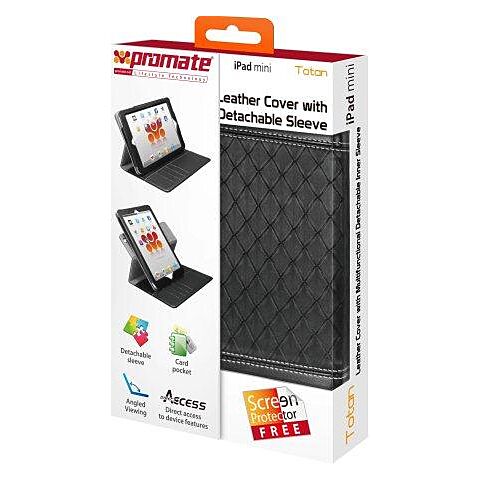 The Promate Totan Leather Cover with Multifunctional Detachable Inner Sleeve for iPad mini provides a sophisticated classic design with detachable leather sleeve case for iPad mini. Totan is a versatile solution and utilizes a unique system of poppers and buttons enabling the case to be transformed into a removable, separate sleeve cover for the iPad mini. When opened, the iPad mini can be displayed horizontally and vertically while getting benefit of an inner pocket card holder. Totan serves as the choice for iPad mini device ensuring complete protection without compromising style and design.