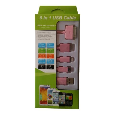 USB Mobile Data Cable 5 in 1 Pink