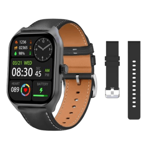 • Leather Strap and Hypo-Allergenic Silicone Strap